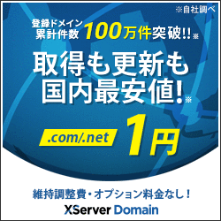 国内最安値!取得も更新も!ドメイン名取得サービス【Xserverドメイン】